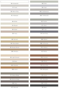 And it will not effloresce. 640 arctic white 381 bright white 11 snow white 641 cool white 642 ash 545 bleached wood 333 alabaster 10 antique white 382 bone 643 warm gray 544 rolling fog. Mold and mildew resistant.